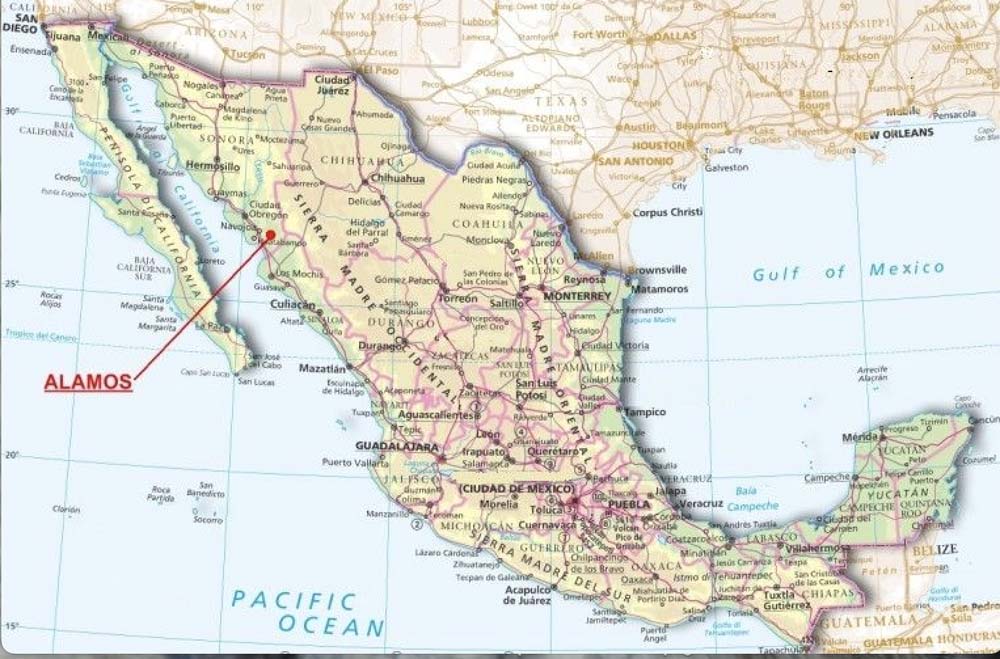 Directions: A total of 409 miles from the US border at Nogales. Take Highway 15 to Navojoa and then Highway 13 for the last 35 miles. Highway 15 is a modern divided freeway.
