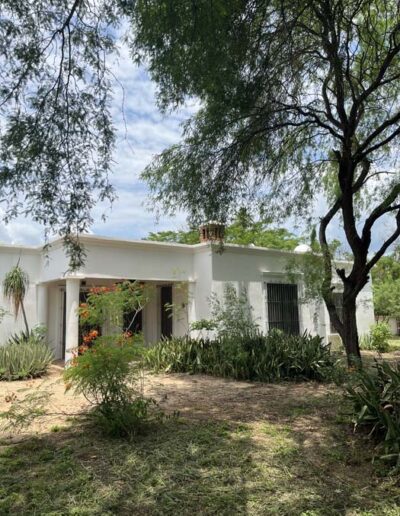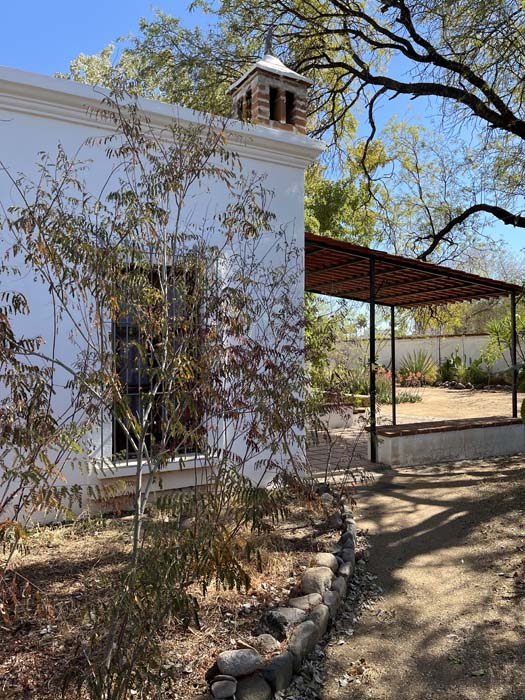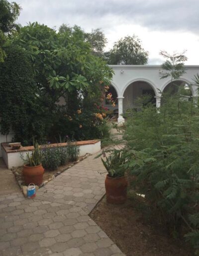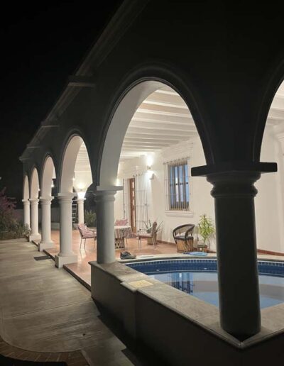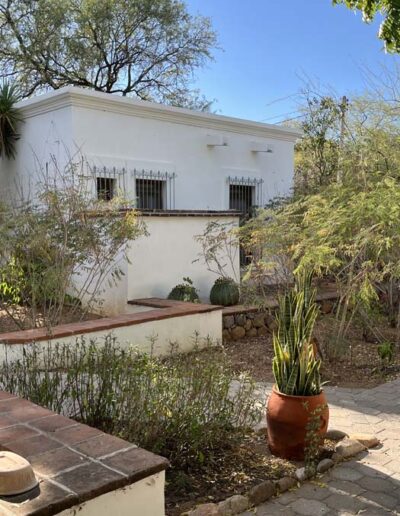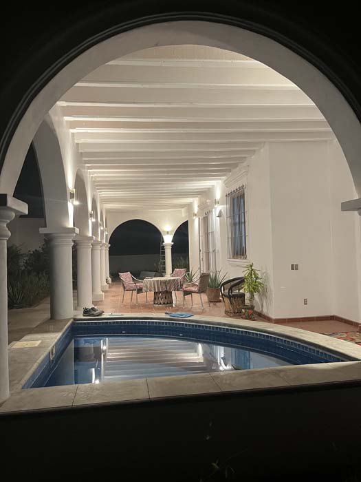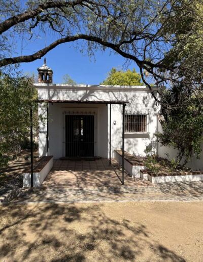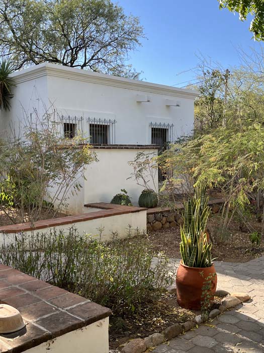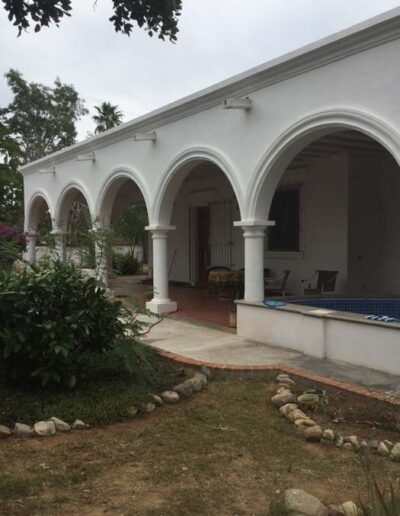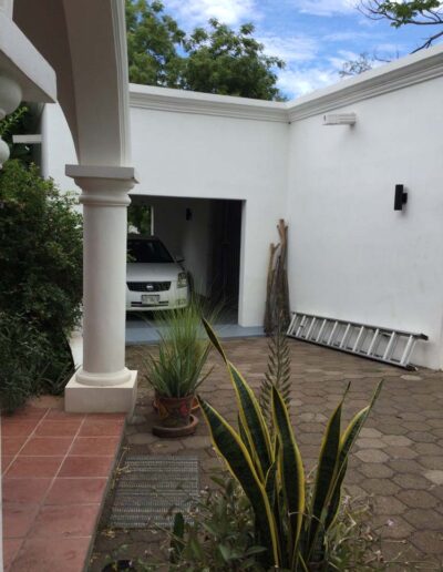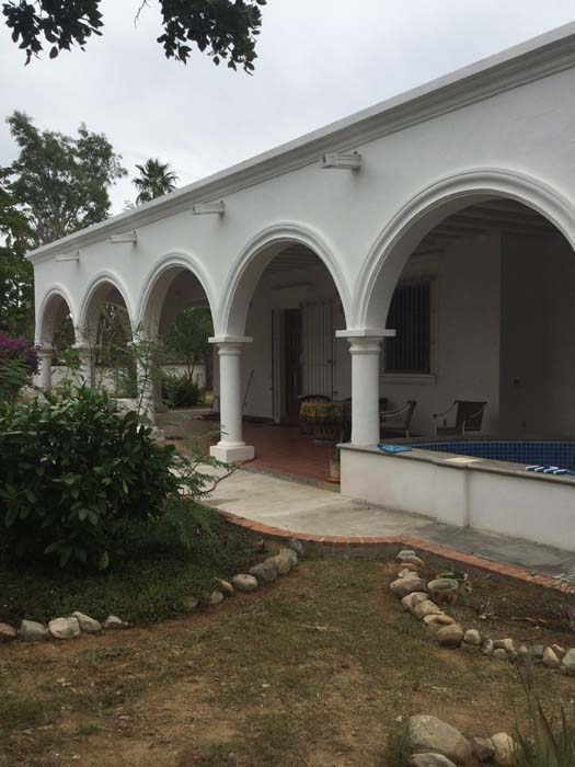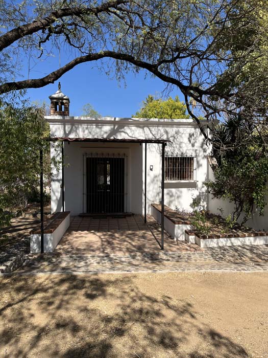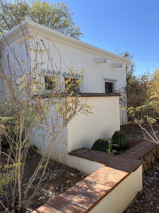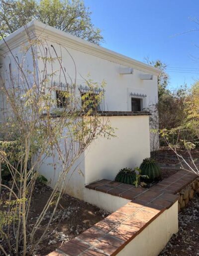 Standing in a half acre of walled grounds, this solidly built house has generous proportions, high ceilings, two portales, a hot tub, a guest cottage, a garage and a bodega. Altogether a total of about 4,000 sq ft.