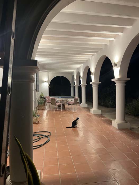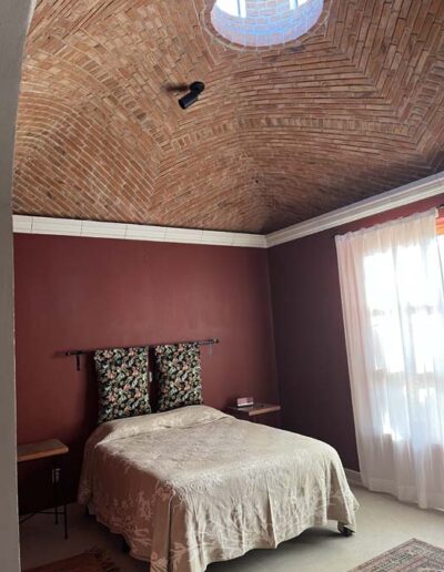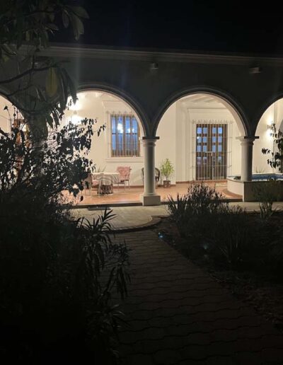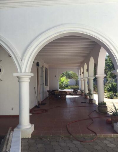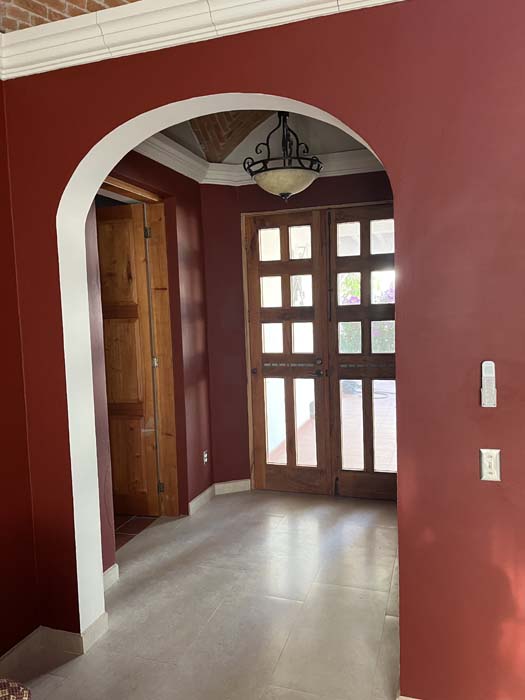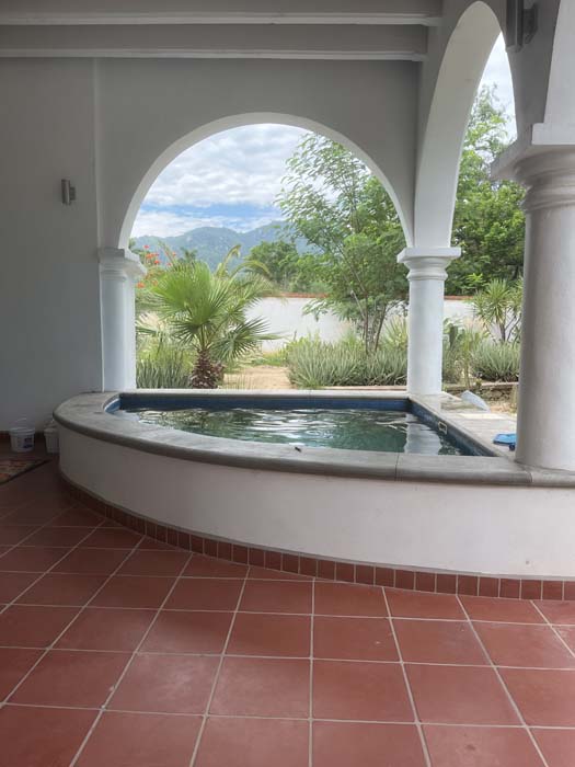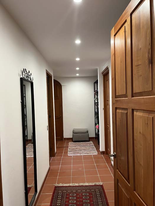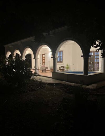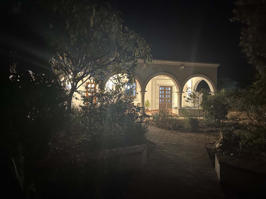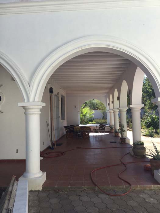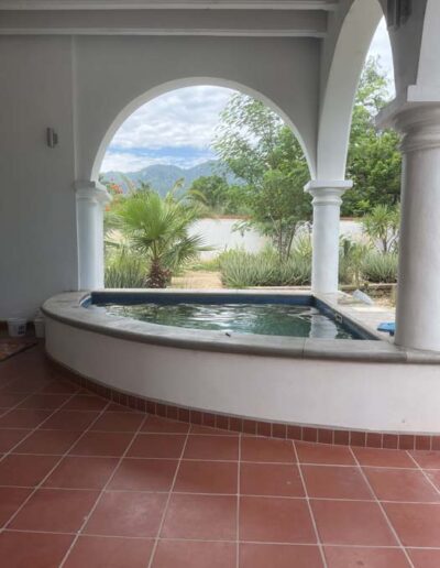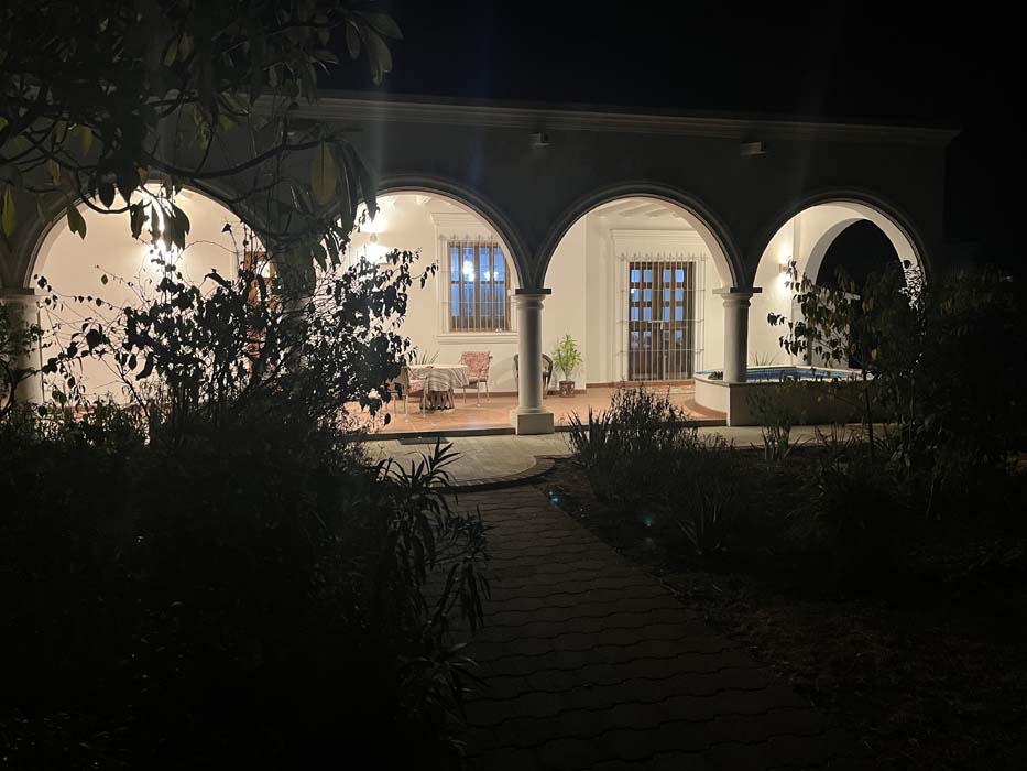 Standing in a half acre of walled grounds, this solidly built house has generous proportions, high ceilings, two portales, a hot tub, a guest cottage, a garage and a bodega. Altogether a total of about 4,000 sq ft.