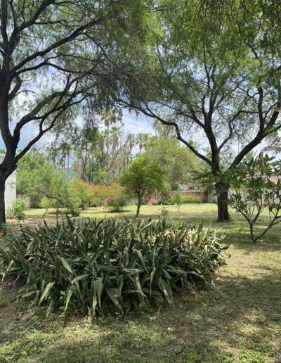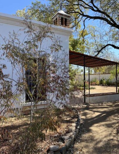 Spacious home ideal for entertaining indoors and out. Large kitchen with recent craftsman-built cabinets, ample countertop and work areas. Larger than average modern bathrooms. Established gardens with a variety of mature trees, shrubs and plants including mesquite, bougainvillea, citrus, aloe vera, cactus and more. Everything well-maintained and easy to care for. This house would suit a buyer looking for a very clean comfortable updated interior, and an exterior with all the charm of Alamos arches and portales. High boundary walls ensure privacy.