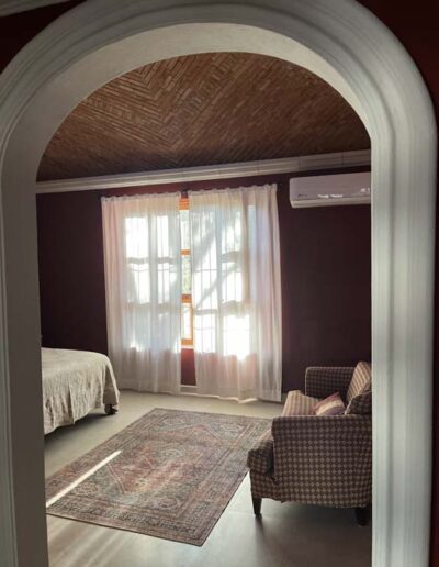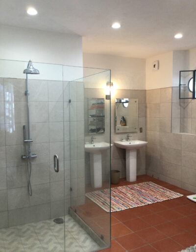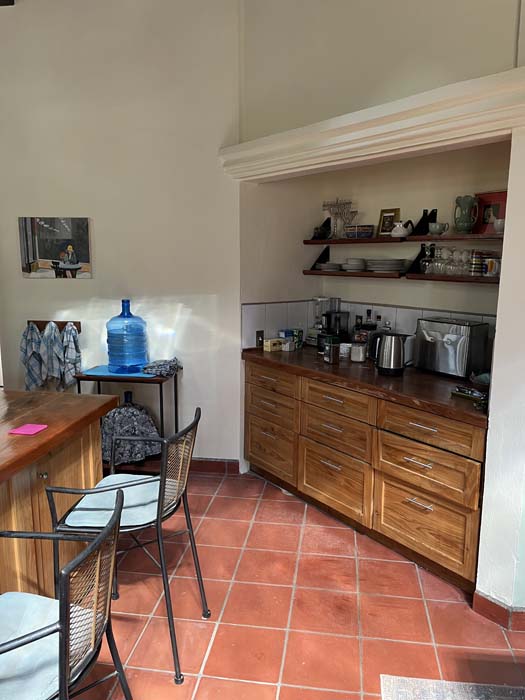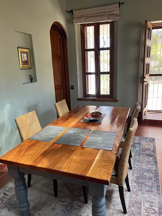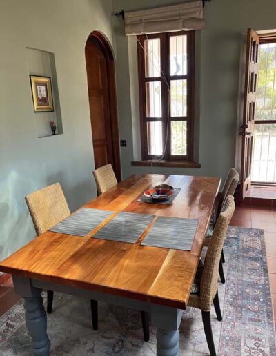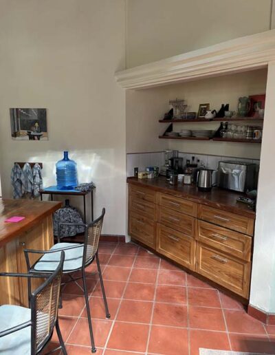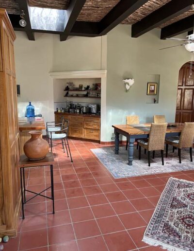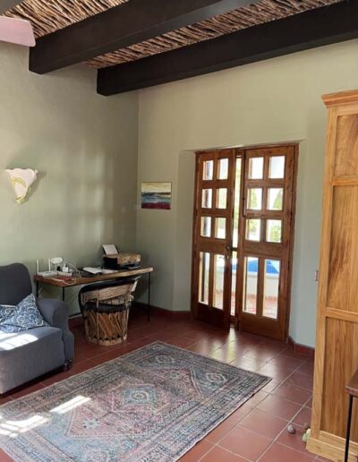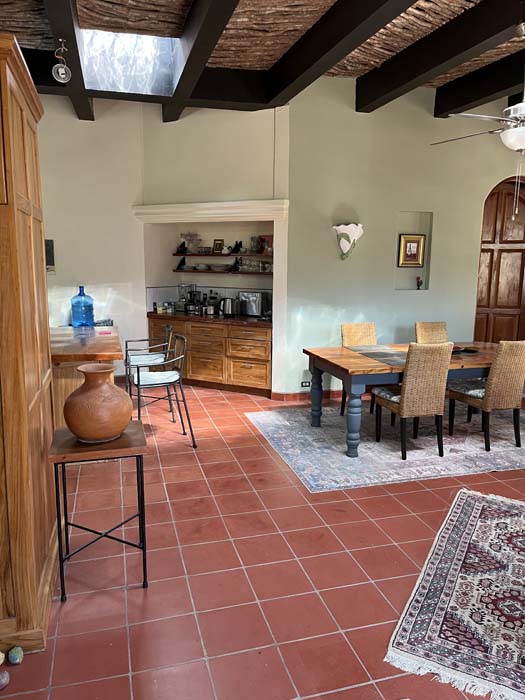 The principal rooms in the main house are two large master bedroom suites, two and a half bathrooms, and a large kitchen / dining / living room. The guest cottage or casita is currently used as a studio but would be ideal accommodation for a couple. It has a main room with a kitchen area and a separate bathroom.